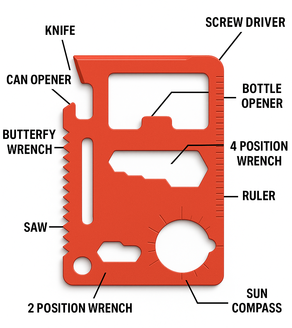 A compact 10-in-1 tool designed for everyday emergencies. Fits in any wallet and keeps you prepared wherever you go.